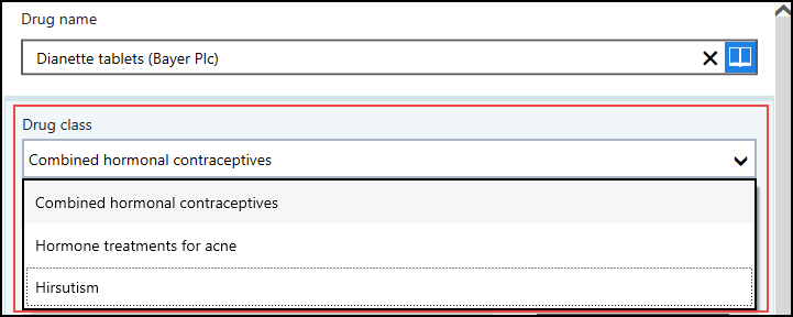 - Drug Class – If a medication belongs to more than one drug class, you can now select which class you are prescribing for, simply select Drug class and choose from the list offered: