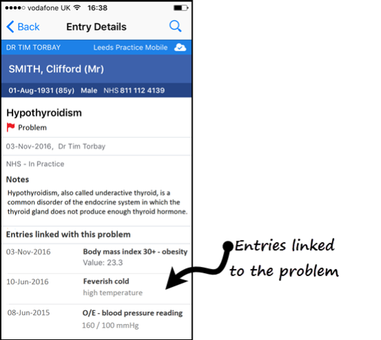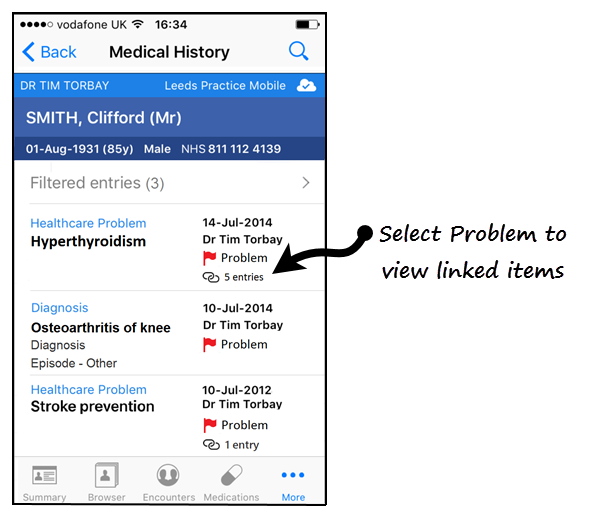 All problems are now shown as a header in the Medical History view, you can see if there are linked items and quickly view these.