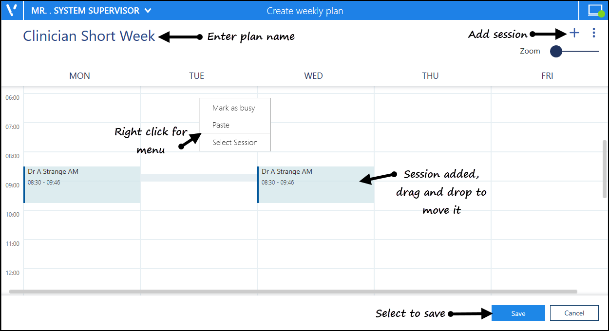 Select Add and drag sessions into the plan as required.