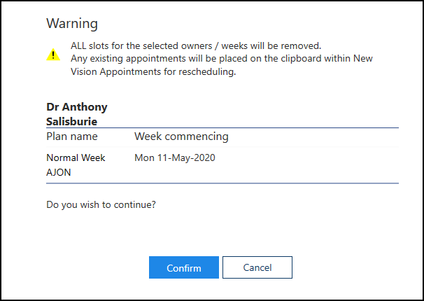 A warning displays. - Check the warning, and select the Confirm button to proceed.