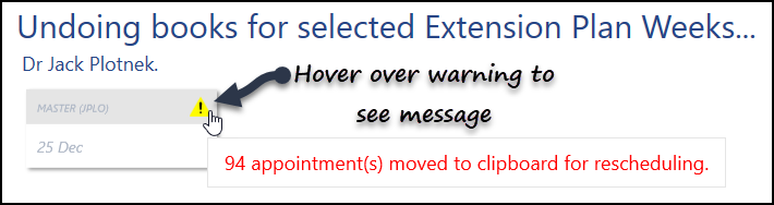 - If any of the appointments moved to the clipboard have linked appointments, open the Linked Appointments Warning screen to view the linked appointments.See Linked Appointment Warnings for more information.